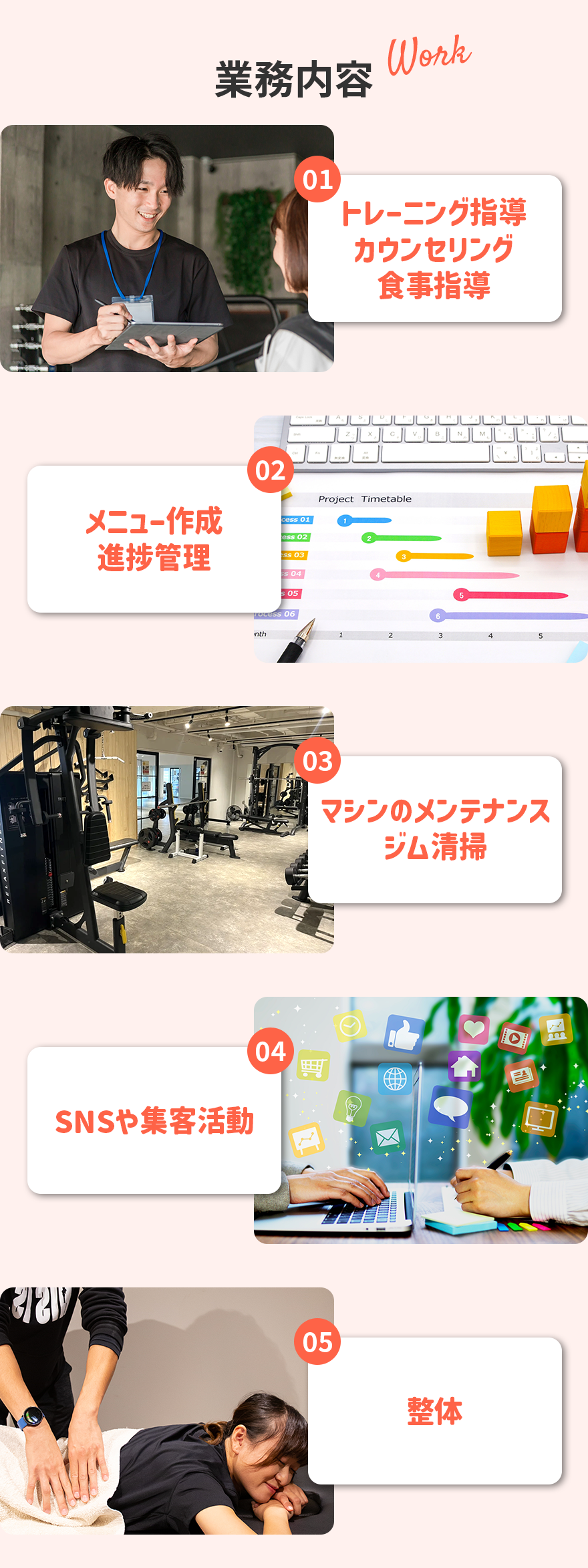 トレーナー → 店長 → エリアマネージャー → 経営スタッフへとステップアップ可能です。